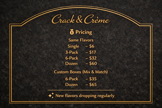 Classic Fruit Flavors Green Orchard 🍏 Banana Dream 🍌 Strawberry Serenade 🍓 Blueberry Bliss 🫐 Raspberry Eclipse ❤️ Creamy Flavors 🍑🤍Peaches & Cream 🍪🥛Cookies & Creme 🤍🍦 Vanilla Bean Specialties 🥭 Tropical Paradise Peanut Butter & Jelly 🥜🍓 Chocolate Covered Strawberry🍓🍫 White Chocolate Raspberry 🤍❤️ ☕ Midnight Roast Dessert-Inspired 🍓🍰Strawberry Cheesecake 🍋🍰 Lemon Cheesecake 🍋🟩🥧 Key Lime Pie Citrus & Bright 🍋 Citrus Glow 🍋🫐 Berry Zest Request Order Request Order Questions? Text Us! Questions? Text Us! *Local Pick Up Only*